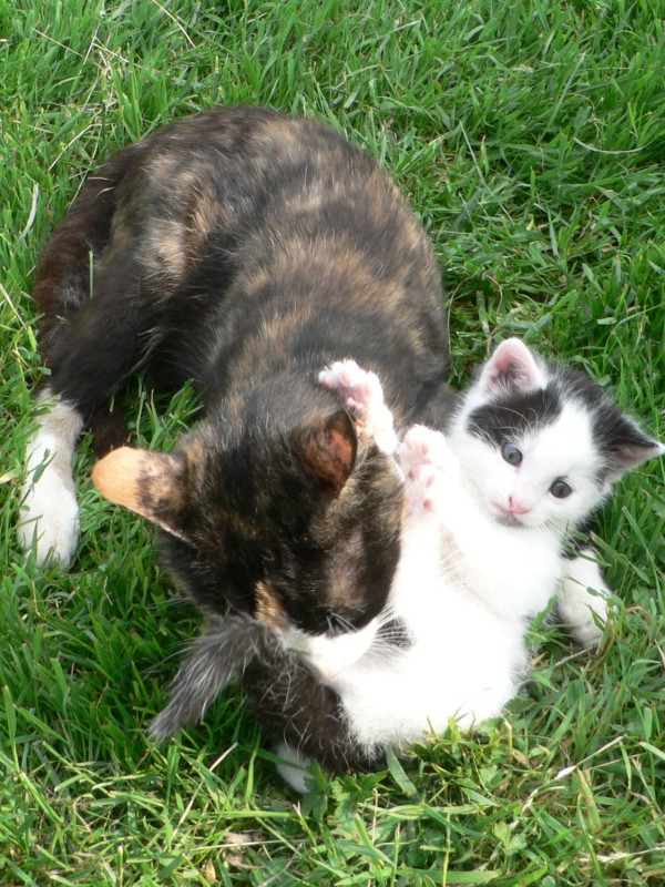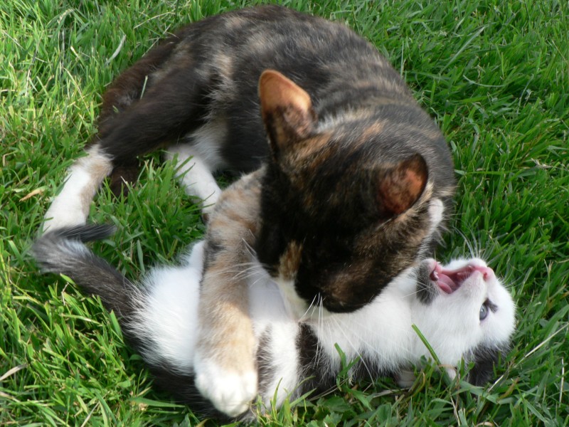 Zugegeben unter Katzenwäsche versteht man eine nicht sehr sorgsame Körperpflege. Aber schauen Sie mal, wie das Katzenjunge unter seiner sauberkeitsbesessenen Mutter, unserer Kätzin Roswitha, leidet.